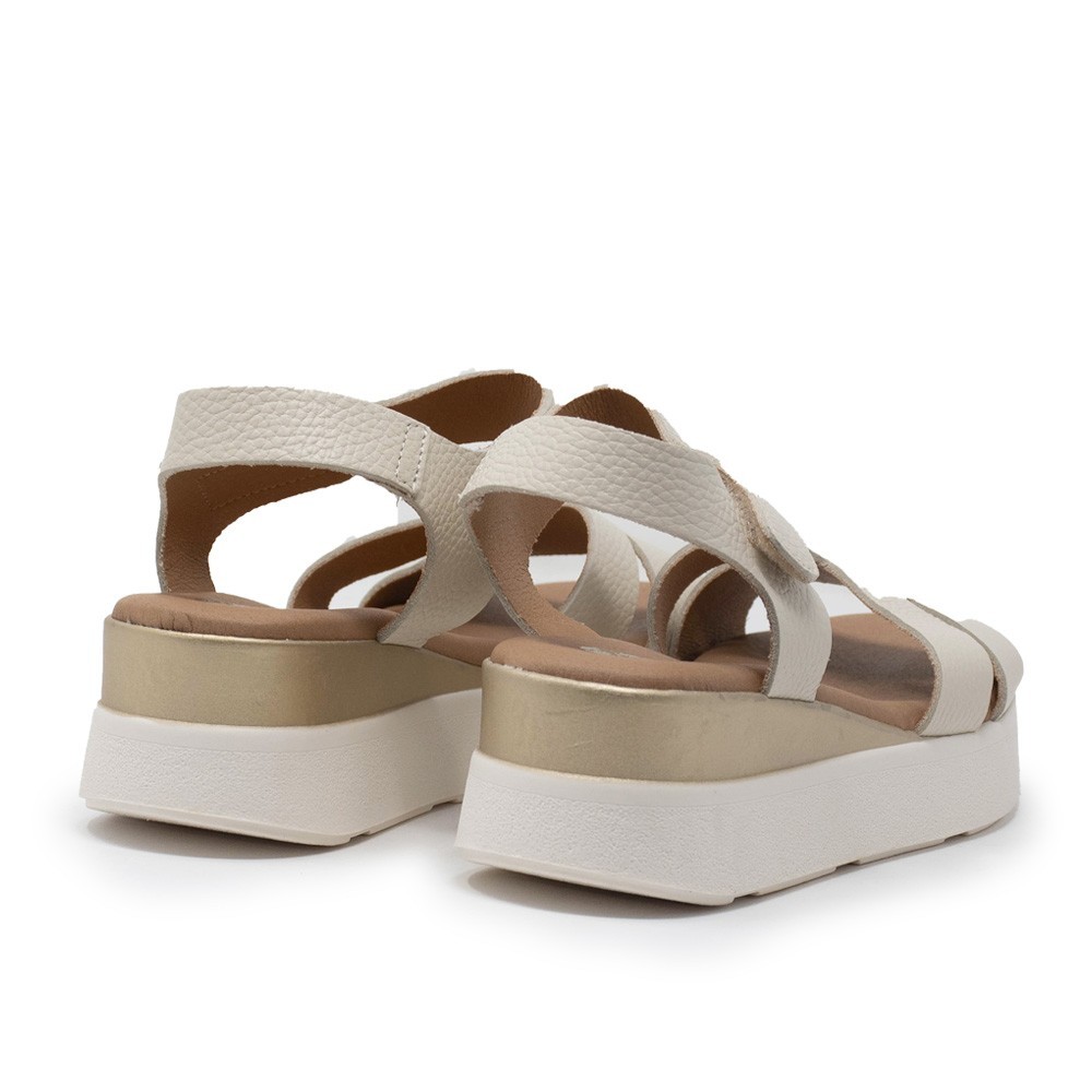El color hielo de estas sandalias es versátil y fácil de combinar con diferentes outfits, desde jeans hasta vestidos veraniegos. El cierre de velcro ajustable te permite adaptarlas a tu pie para un ajuste perfecto, mientras que las tiras cruzadas le dan un toque moderno y elegante.