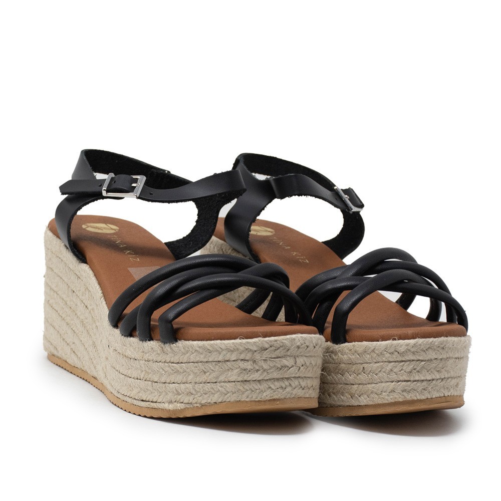 SANDALIA TIRAS PLATAFORMA YUTE NEGRO