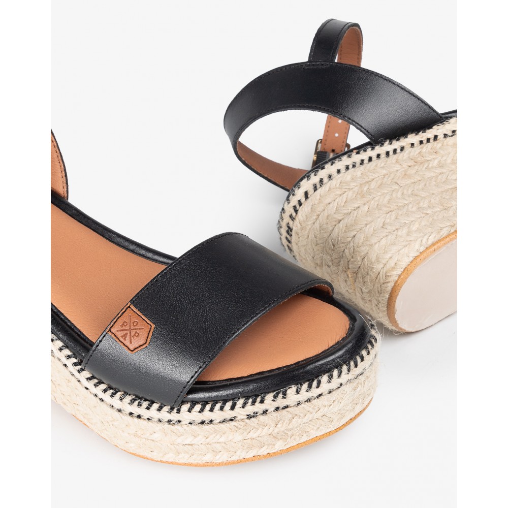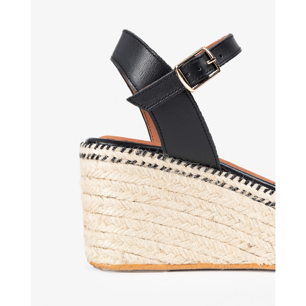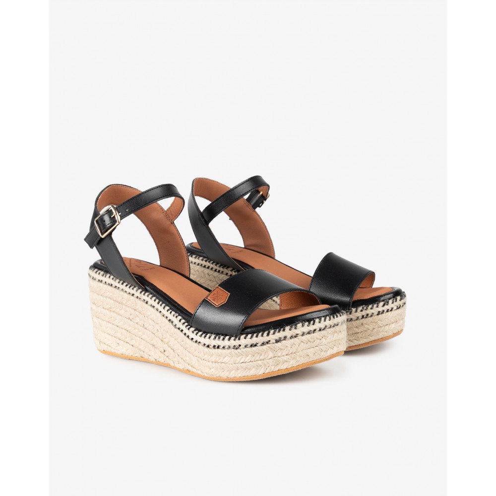 SANDALIA CUÑA YUTE PIEL NEGRO