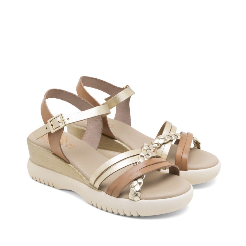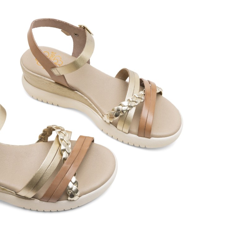 SANDALIA PALA TIRAS TAUPE ORO