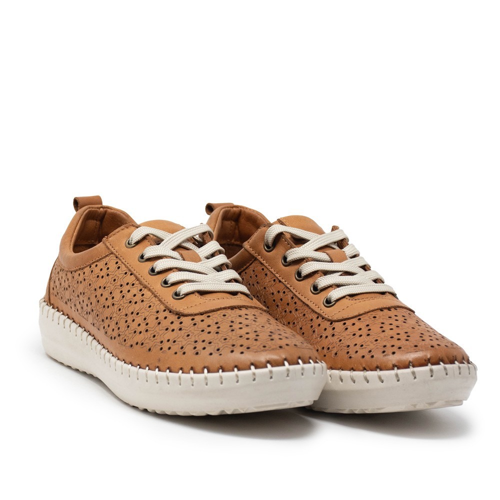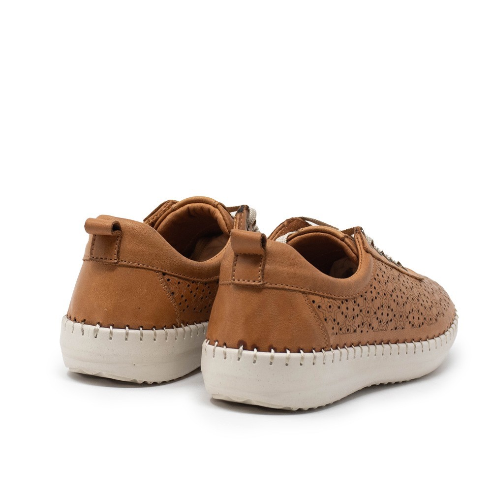 Fabricados con materiales de alta calidad, estos sneakers ofrecen una gran durabilidad y resistencia. La suela amortiguada proporciona una pisada cómoda y estable, ideal para caminar largas distancias sin cansancio. Además, el diseño picado en color tabaco le da un toque único y moderno a este calzado.
