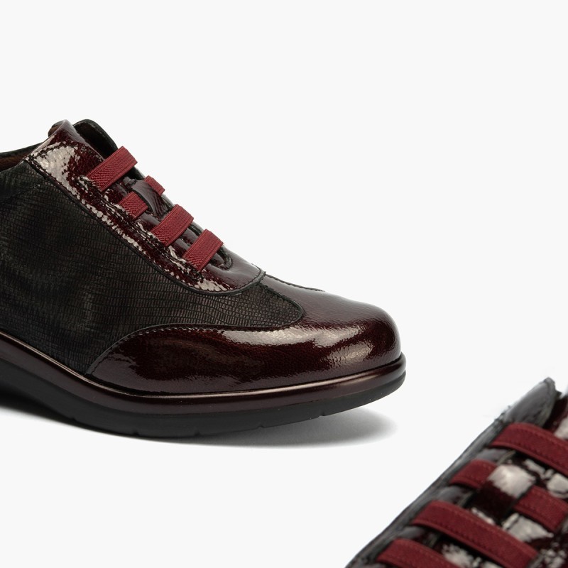 Estos DEPORTIVO ELÁSTICOS BURDEOS son ideales para combinar con tus looks informales favoritos. Ya sea con jeans, leggings o faldas, estos sneakers agregarán un toque de estilo único a tu outfit.