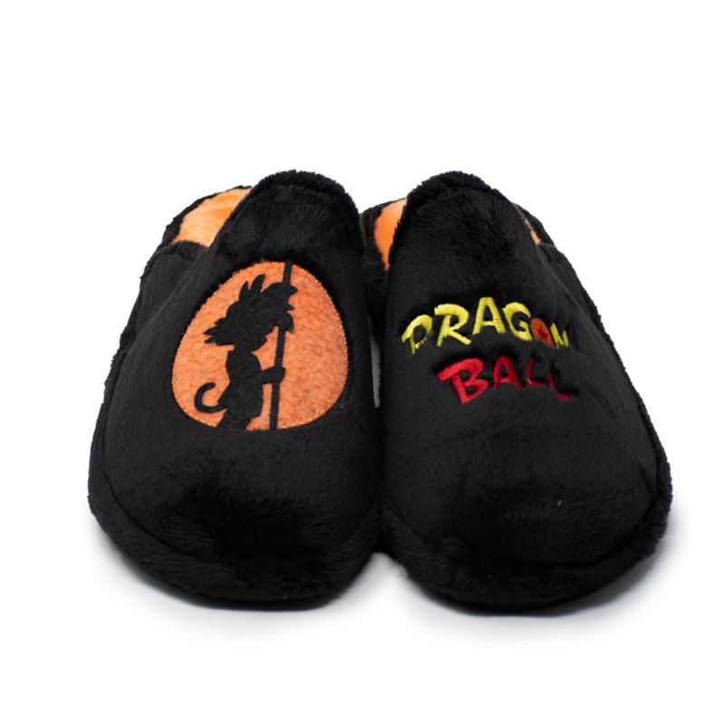 Las CHINELA DRAGON BALL NEGRO están fabricadas con materiales de alta calidad que garantizan durabilidad y confort. La parte superior está confeccionada en suave tejido negro con detalles del famoso logo de Dragon Ball, mientras que el interior cuenta con un forro acolchado que brinda una sensación agradable al caminar.