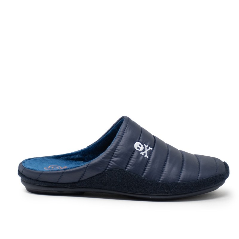 Estas chinelas están fabricadas con materiales de alta calidad que garantizan durabilidad y comodidad. La parte superior está confeccionada en un suave tejido acolchado de color marino que proporciona una sensación agradable al tacto. El interior está forrado con un material suave y cálido que mantendrá tus pies abrigados en los días fríos.