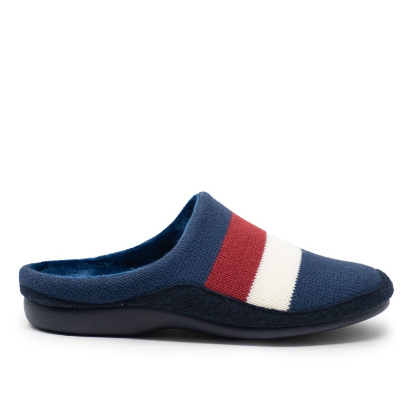 Estas zapatillas están fabricadas con materiales de alta calidad que garantizan durabilidad y comodidad. La parte exterior está confeccionada en tela rallada de color marino, lo que le da un toque elegante y sofisticado. La suela es antideslizante, ideal para caminar por casa con total seguridad.