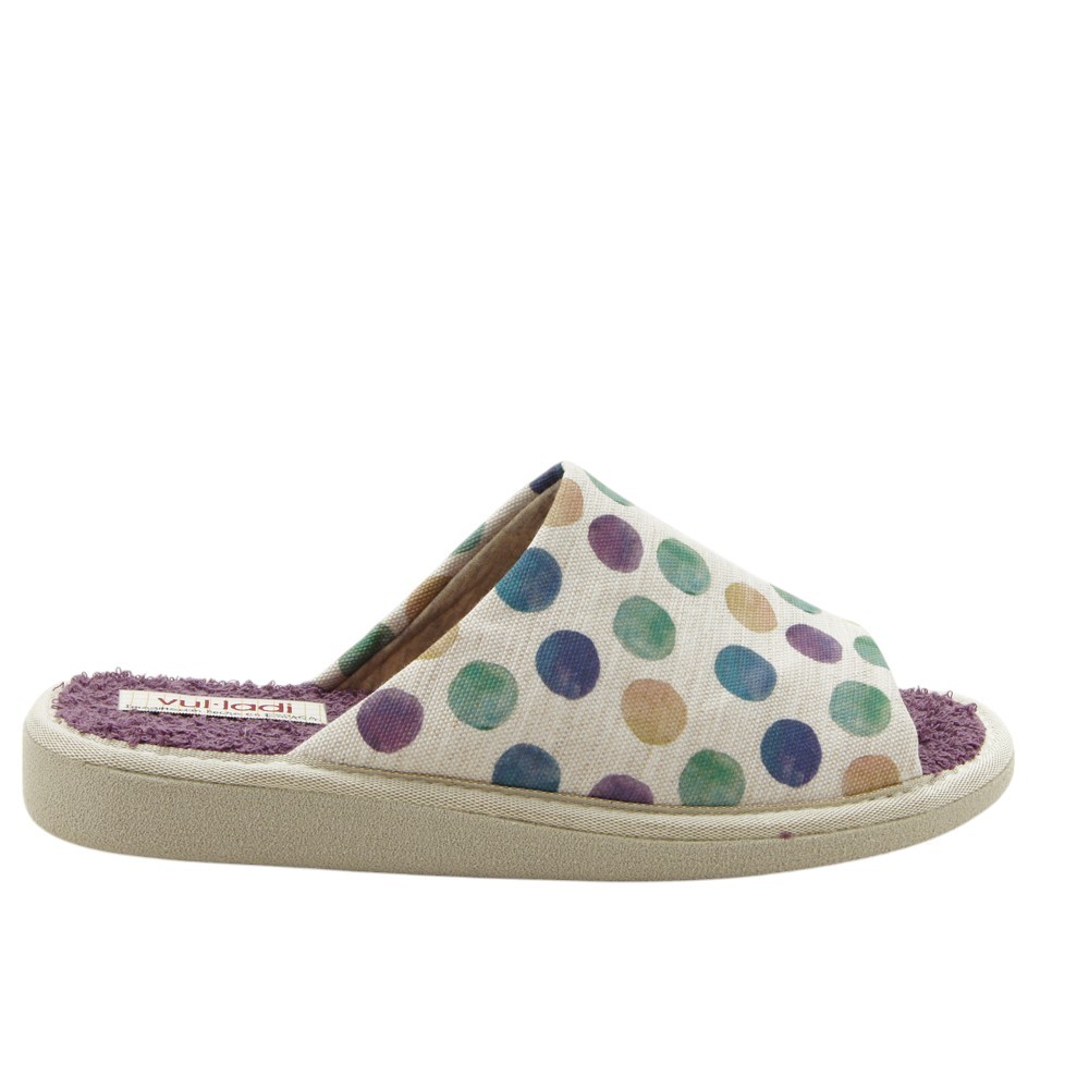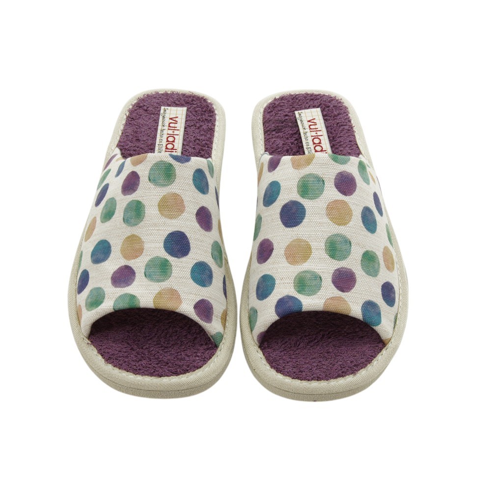 Estas zapatillas están fabricadas con materiales de alta calidad que garantizan durabilidad y confort. El color morado acuarela le da un toque único y moderno a tu look, haciendo que destaquen entre el resto de calzado de casa.