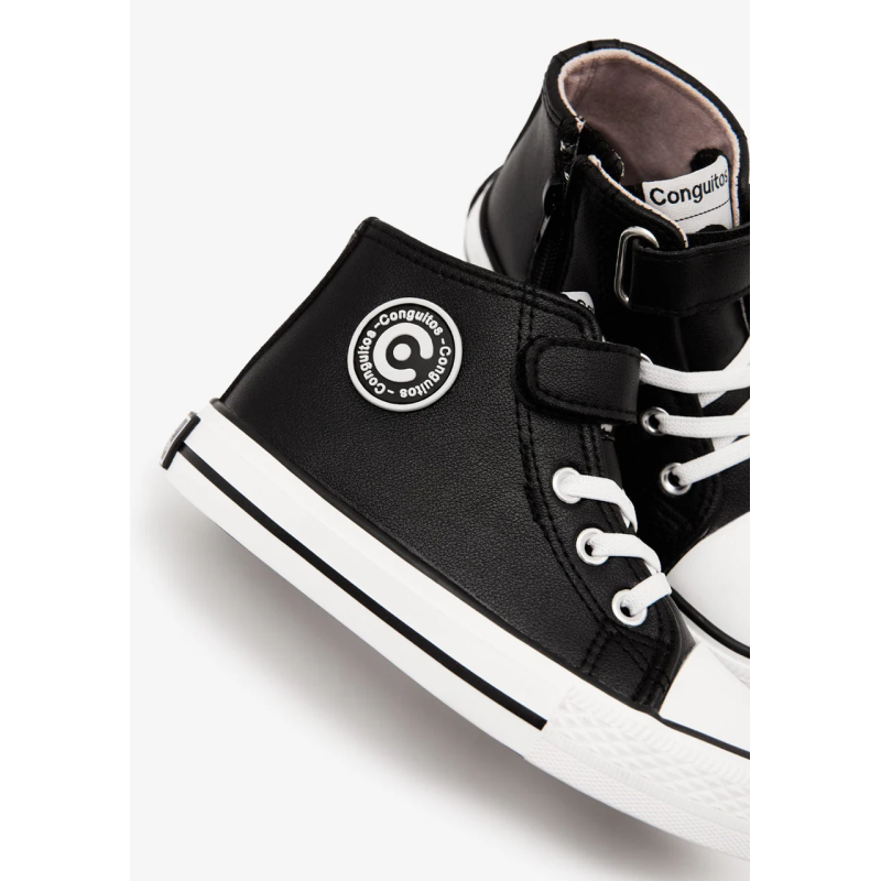 El color negro clásico de estas botas sneakers las hace fáciles de combinar con cualquier outfit, ya sea casual o más formal. Su estilo deportivo las convierte en una opción cómoda para actividades diarias como ir al colegio, pasear o jugar con amigos.