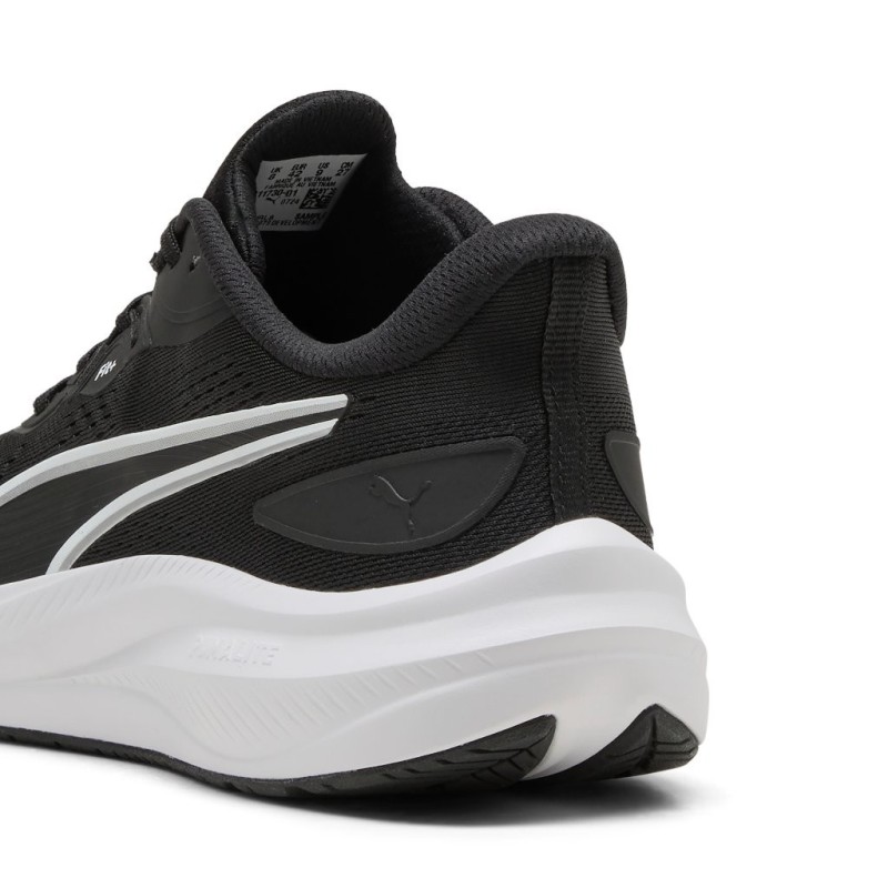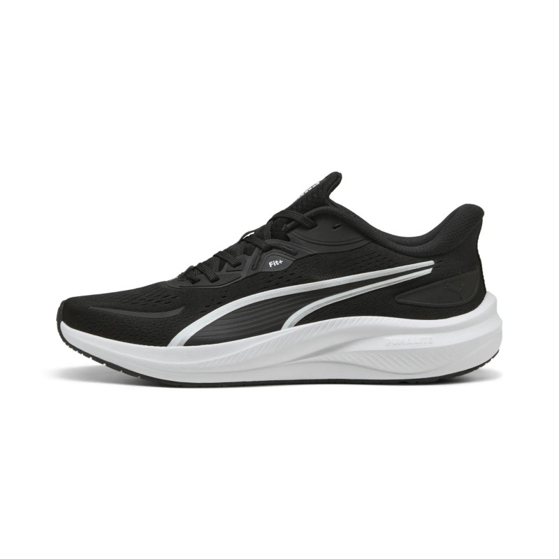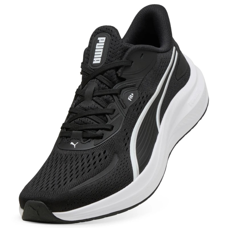 Este moderno y elegante calzado deportivo de la marca PUMA es perfecto para los hombres que buscan comodidad y estilo en un solo producto. Con un diseño en color negro, blanco y plata, estas zapatillas son ideales para combinar con cualquier outfit deportivo o casual.