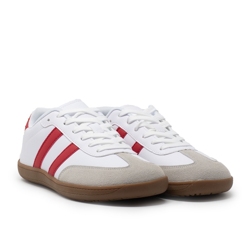 Con un diseño moderno y atractivo en color blanco con detalles en rojo, estos deportivos son ideales para completar tu outfit deportivo y destacar tu estilo único. La suela flexible y ligera te permitirá moverte con total libertad, mientras que el material transpirable mantendrá tus pies frescos y cómodos en todo momento.