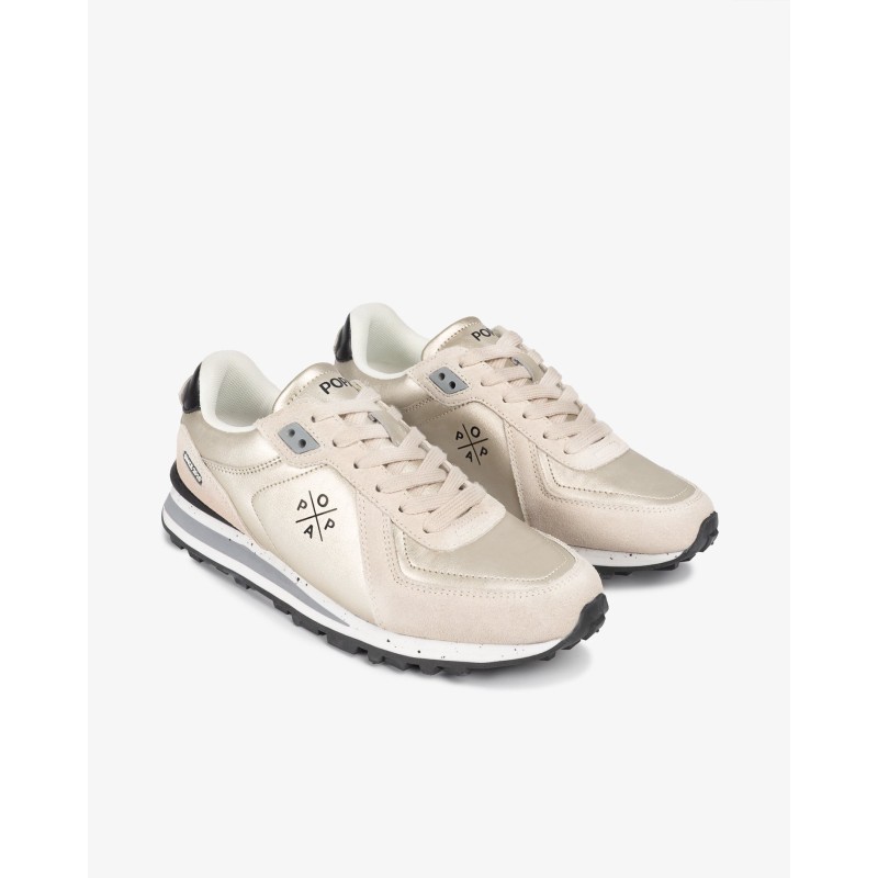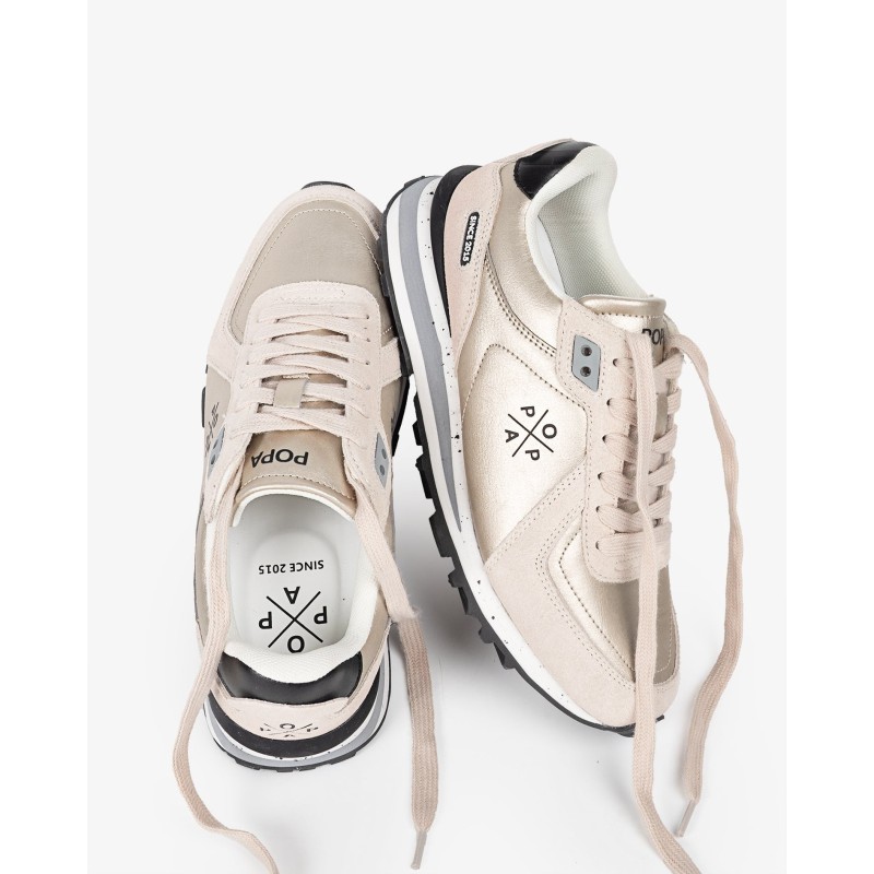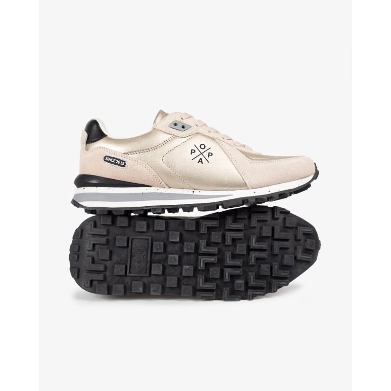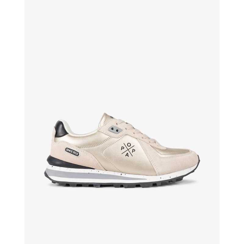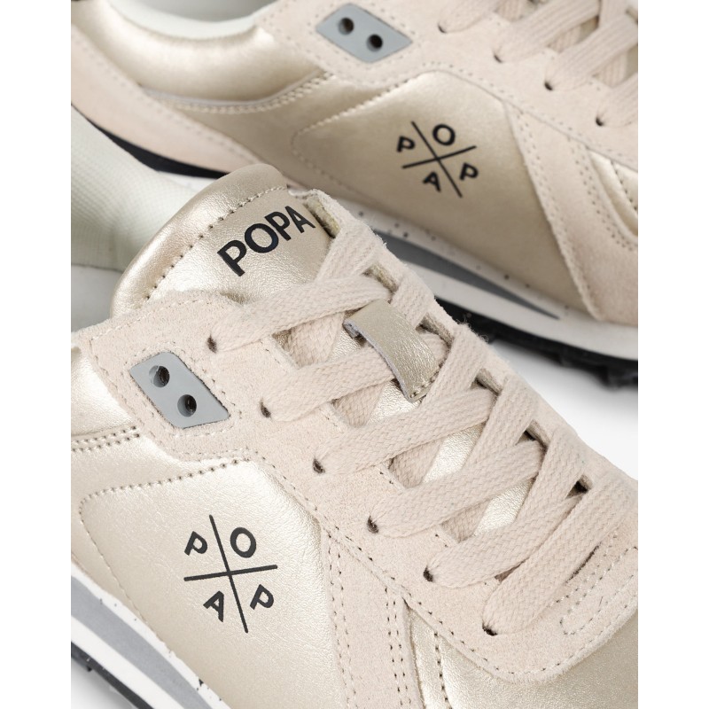 El DEPORTIVO ORO LAMINADO de la marca POPA es el calzado perfecto para las mujeres que buscan combinar estilo y comodidad en sus outfits deportivos. Con un diseño moderno y elegante, estas zapatillas deportivas son ideales para lucir tanto en el gimnasio como en tu día a día.