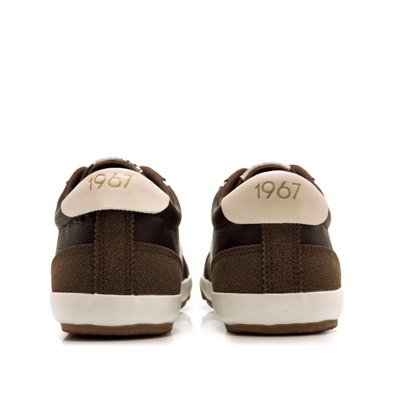 El modelo DEPORTIVO MOKA destaca por su confección en materiales de alta calidad que garantizan durabilidad y resistencia. La combinación de colores marrón y blanco le confiere un aspecto elegante y a la vez desenfadado, ideal para lucir en diferentes ocasiones.