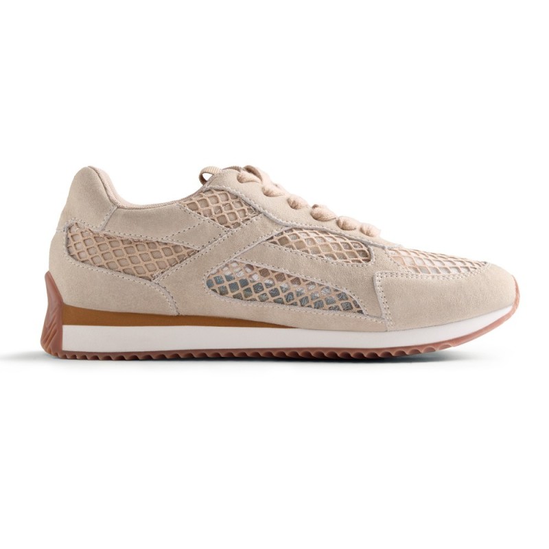 El color beige de estas zapatillas las hace muy versátiles, ya que combinan a la perfección con todo tipo de outfits. Su diseño con rejilla en la parte superior le da un toque original y diferente, convirtiéndolas en el complemento ideal para cualquier look casual.