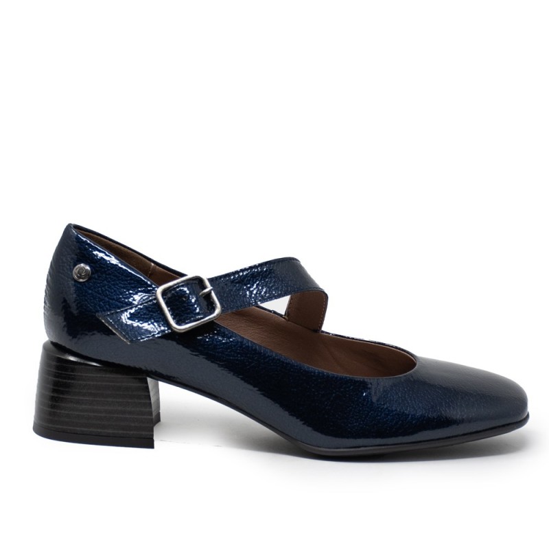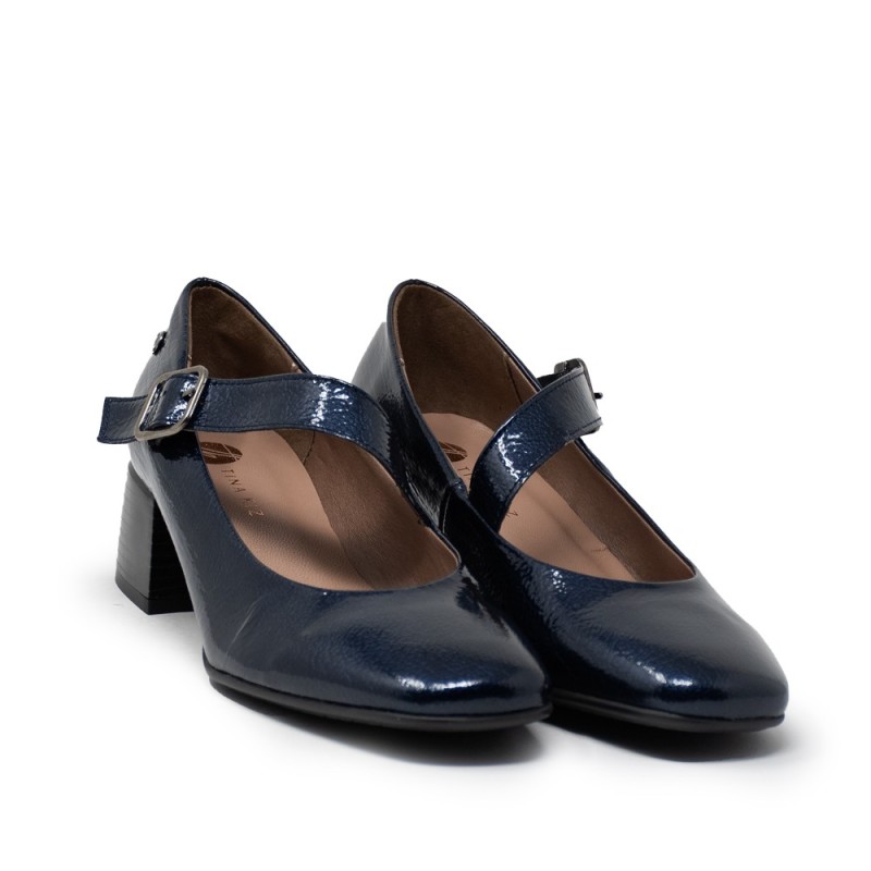 Estos elegantes zapatos Mercedes con hebilla son el complemento perfecto para cualquier outfit casual. Fabricados en charol de color marino, destacan por su estilo clásico y sofisticado que nunca pasa de moda.