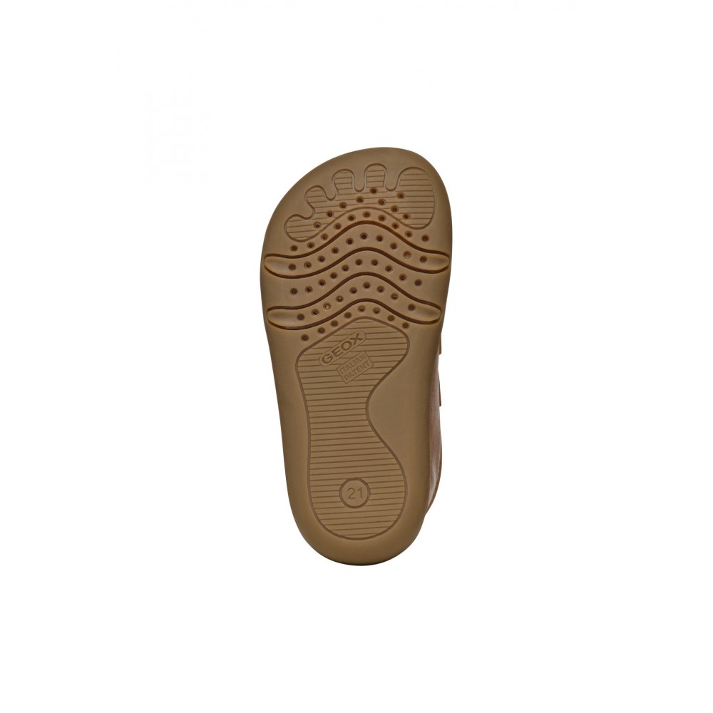 La suela de goma antideslizante garantiza una pisada firme y segura, ideal para los primeros pasos en diferentes superficies. Además, la tecnología patentada Geox Respira permite que los pies respiren correctamente, manteniéndolos frescos y secos en todo momento.