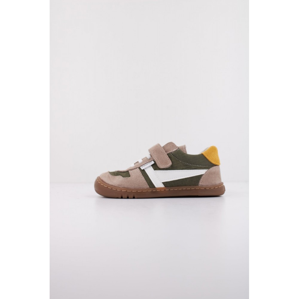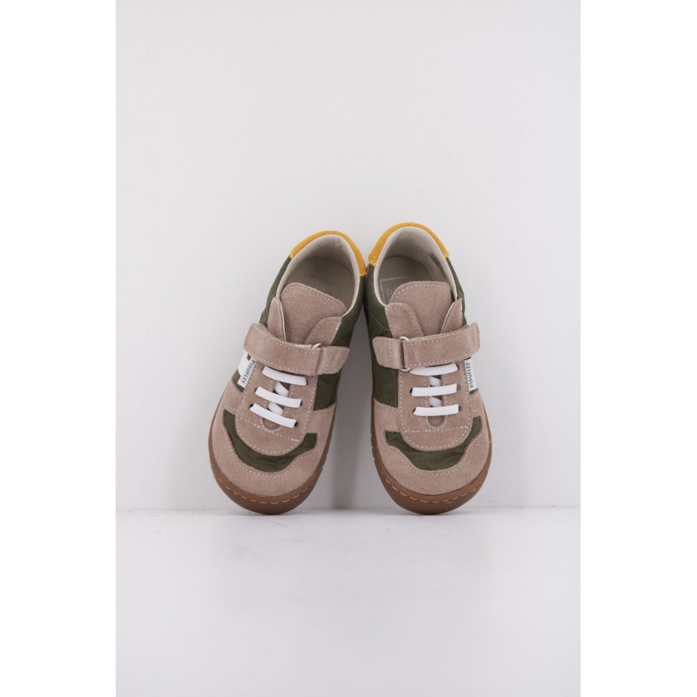 Hechos con materiales respetuosos con el medio ambiente, estos zapatos están fabricados con piel de alta calidad en color kaki y serraje nique, lo que les confiere una apariencia elegante y duradera. La suela antideslizante proporciona estabilidad y seguridad a cada paso, permitiendo que tu bebé se mueva con total confianza.