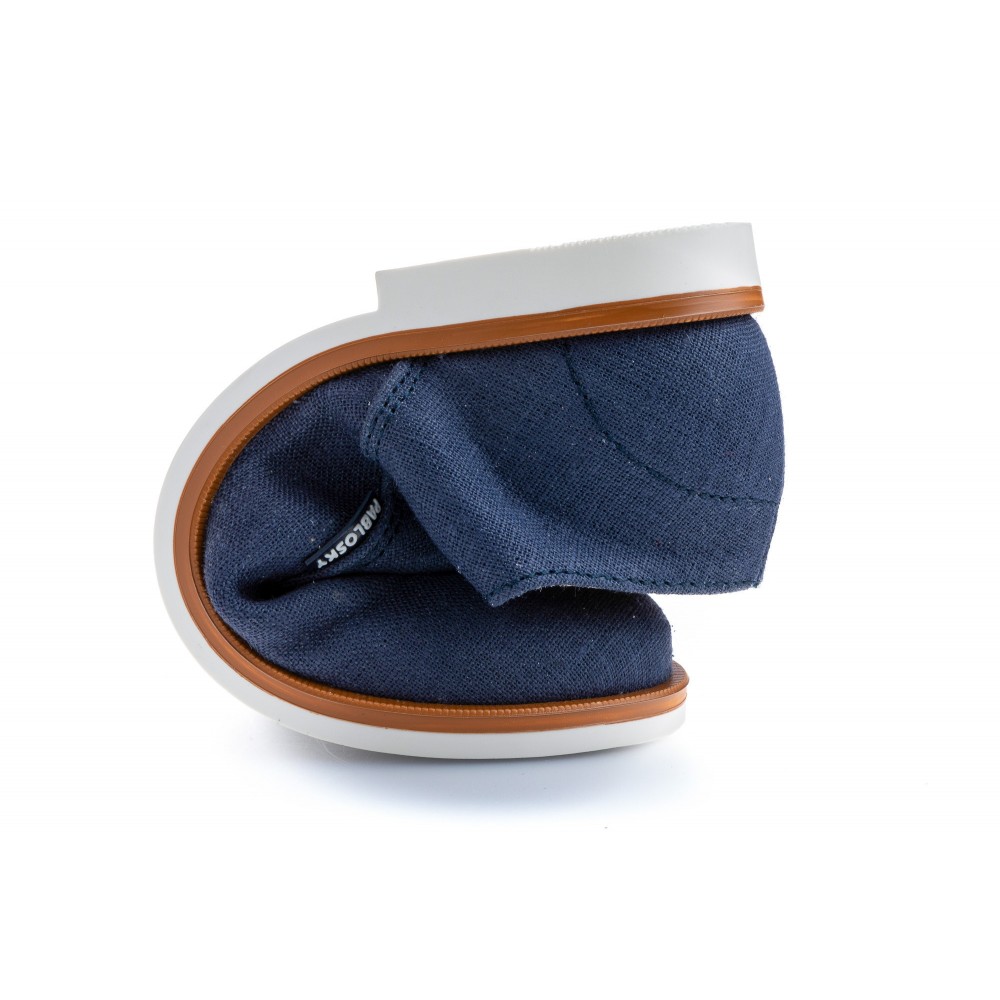 Estos zapatos están fabricados con materiales de alta calidad que garantizan durabilidad y comodidad. La parte exterior está confeccionada en lino color marino, lo que le da un toque sofisticado y versátil. El interior está forrado con suave tejido para mantener los pies frescos y cómodos durante todo el día.